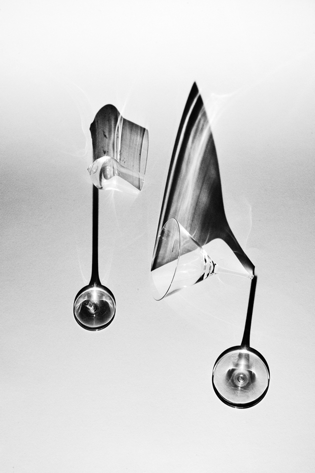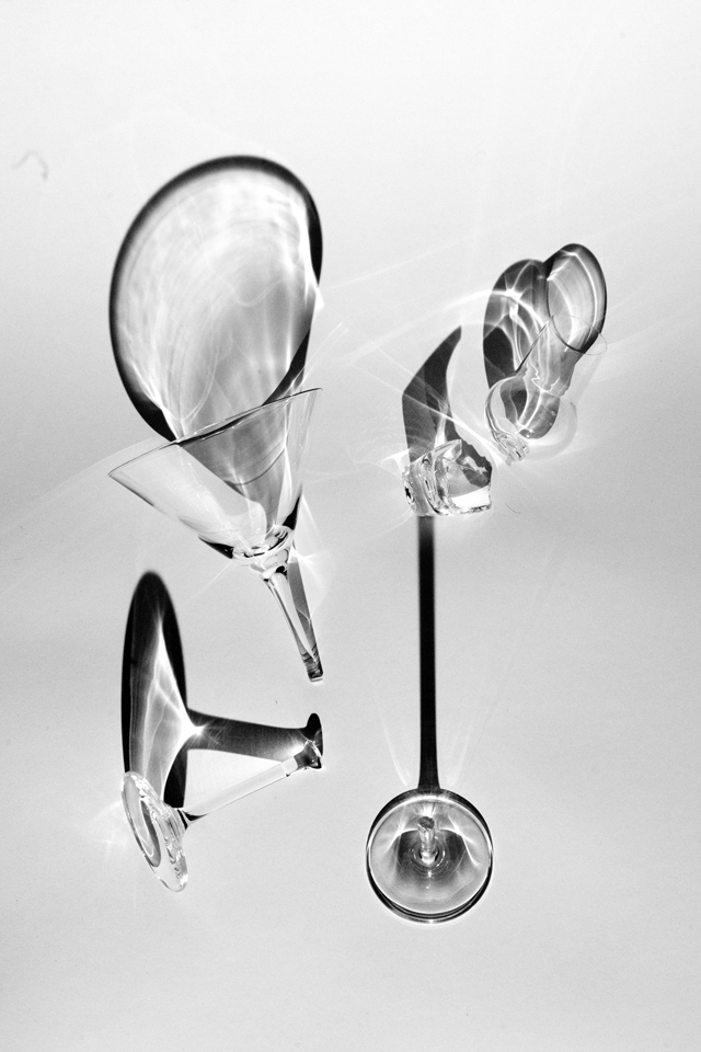 In Krisenzeiten werden Schatten sichtbarer. Veränderungen bringen neue Lichtverhältnisse mit sich. Die Glasscherben und Bruchstücke zeichnen im Lichtkegel dunkle abstrakte Formen. Der zufällige Fall und Bruch des Glas ist nicht das Ende, sondern der Beginn der Aufnahmen. Die Photographien transformieren Zerstörtes in eine neue Erscheinung. Schatten sind ein vielschichtiges Thema, oft auch in der Form der Vermeidung und nicht Erwähnung. Sei es in der kommerziellen Abbildung oder in der Ästhetik vorprogrammierter Bildverarbeitungsprogrammen mobiler Endgeräte oder in der eigenen Wahrnehmung. In der Betrachtung sind Schatten unweigerlich von Licht umgeben und Lichteinfall ist die Grundlage aller Schatten. Dieses Fazit zeigt die Perspektive im Wandel und im Verlauf des Scheiterns.
