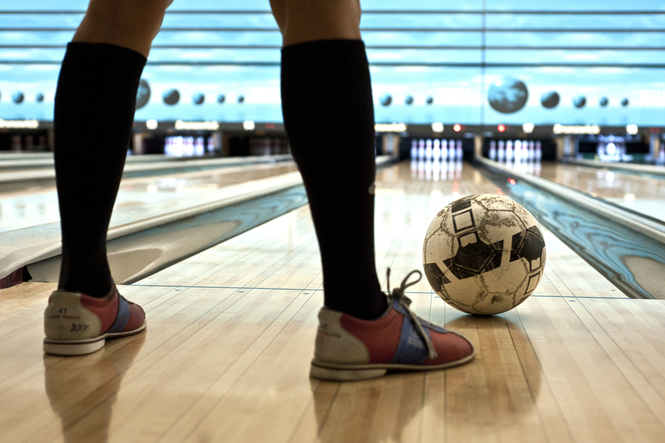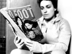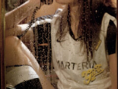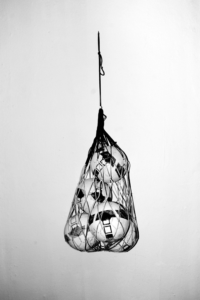 Im Fußball steht der Ausdruck „auf gleicher Höhe“ für eine nicht mehr als Abseits zu ahnende Spielsituation. Der Titel dieser fotografischen Serie über ein Berliner Frauenfußballteam ist ganz konkret und weist doch auch über sich hinaus: Frauenfußball ist kein Regelüberschritt mehr. Frauenfußball steht nicht mehr im Abseits, sondern ist schlichtweg auf gleicher Höhe. Die fotografierten Personen sind Spielerinnen des Kreuzberger Vereins FSV Hansa 07. Am Ball, auf dem Spielfeld, im Regen, am Telefon oder nach dem Training im Auto wartend. Oder wie oben zu sehen, auf dem Weg zum Training in der Installation „Zerstörte Vielfalt in Berlin“ von 2013. Die Schwarzweißporträts auf den Litfaßsäulen erinnern an die Schicksale von Kulturschaffenden und Politikern, die unter dem Nationalsozialismus aus Berlin vertrieben oder getötet wurden sind.