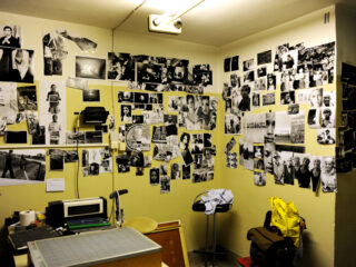 It is a small selection of pages from the three extended books of »Berlin« with taped in images never got published within the series